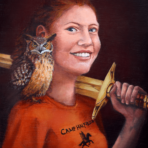 The camp is based on the world of Rick Riordan’s ‘Percy Jackson and the Olympians’ book series. The campers and counselors are demigods; children of the Olympian gods. Camp Half-Blood is the training camp for demigods. Each of these paintings represent a counselor and the god they descend from.